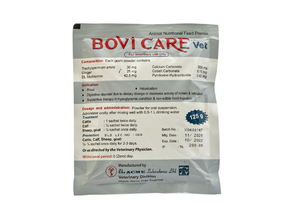 Each g powder contains Trachyspermum ammi 30 mg, Calcium Carbonate 500 mg, Ginger 25 mg, Cobalt Carbonate 0.11 mg, DL-Methionine 42.5 mg, Pyridoxine Hydrochloride 0.42 mg