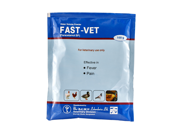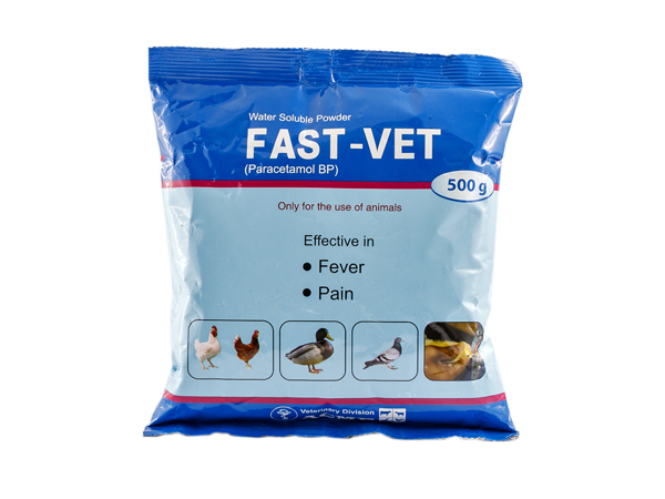 Poultry: Fever & pain caused by vaccination, debeaking & any other infectious diseases as supportive therapy.