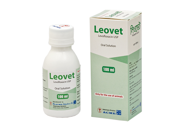 Levofloxacin (Leovet) is effective in CRD, CCRD, Colibacillosis, Salmonellosis, Infectious coryza, Necrotic enteritis, Fowl cholera etc. It is also indicated for prevention & treatment of secondary bacterial infections followed by viral infections such as Ranikhet, Gumboro etc.